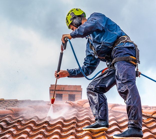 Nous procédons au démoussage par pulvérisation à basse pression pour éliminer les mousses et lichens sans risquer d’endommager vos tuiles.